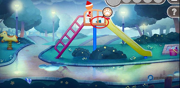 5、之后我们来到滑滑梯这里,可以看见上面有颜料,并且有只青蛙守在那里,我们上去并将小青蛙交给它即可得到第三个颜料