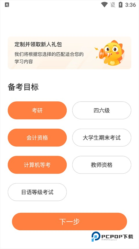 1、完成备考目标系统会根据您选择的匹配适合您的学习内容