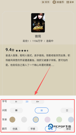 4、阅读设置选项允许用户自由调整界面背景和字体样式,打造最符合个人喜好的阅读环境,让您畅享无阻阅读乐趣。