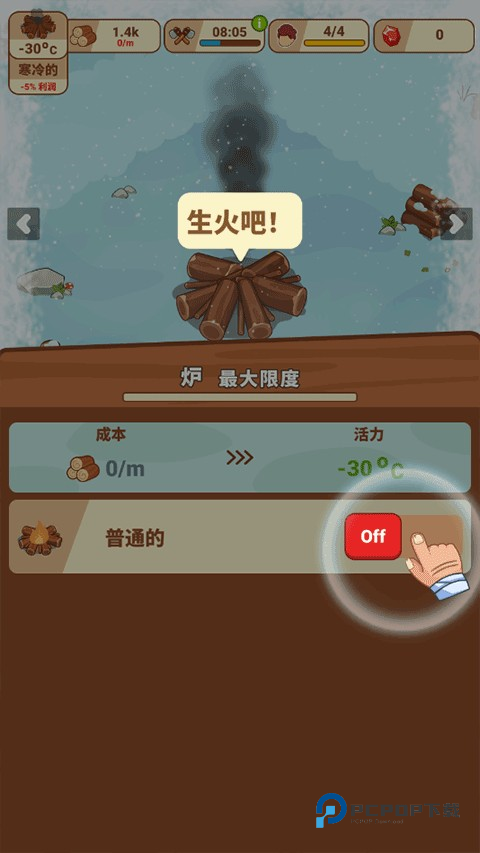 2、如果想直接进入游戏,可以点击屏幕任意位置跳过对话内容,来到主界面后第一步是点燃柴火堆;