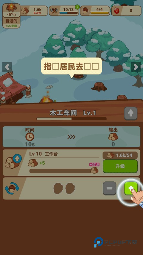 4、木工车间建成后,点击“+”号分配居民进行工作任务;