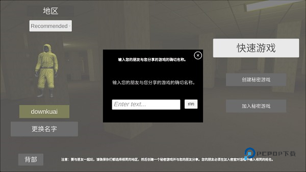 8、选择相同地图、地区后,输入相同的房间名称,