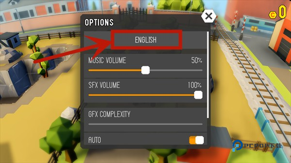 1、进入鲁莽大逃亡2手机版,可以看到游戏默认为英文,此时需要点击右下角的设置按钮;