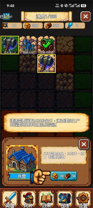 解锁“兵营”后即可招募基础作战单位,包括 步兵、火手 等,为早期战斗提供必要兵力。