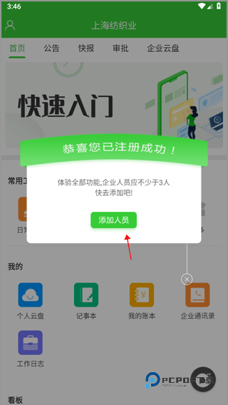 1、打开阿筑工程管理服务平台之后会自动弹出一个小窗口,点击中间的“添加人员”按钮。