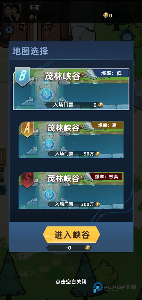 2、通过轮盘控制角色移动,选择心仪的峡谷地图进入游戏。