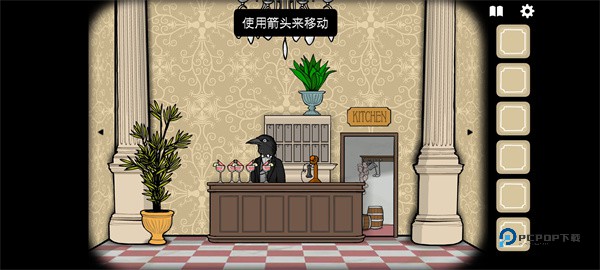 3、首先进入到前台,边上的门去往厨房。前台的五杯“鲜虾鸡尾酒”拿走(这丧心病狂的口味……)。乌鸦先生的时候他会说:“欢迎客人们的到来,周到体贴地为他们进行服务。”