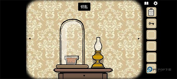 10、然后是鹿先生右边(画面左边)油灯桌上放大后得到下图红框处的钥匙。
