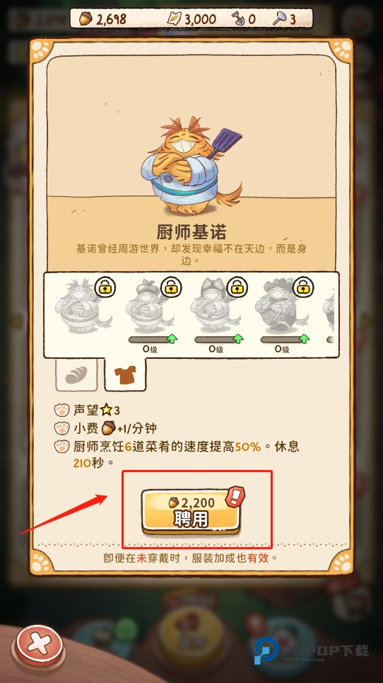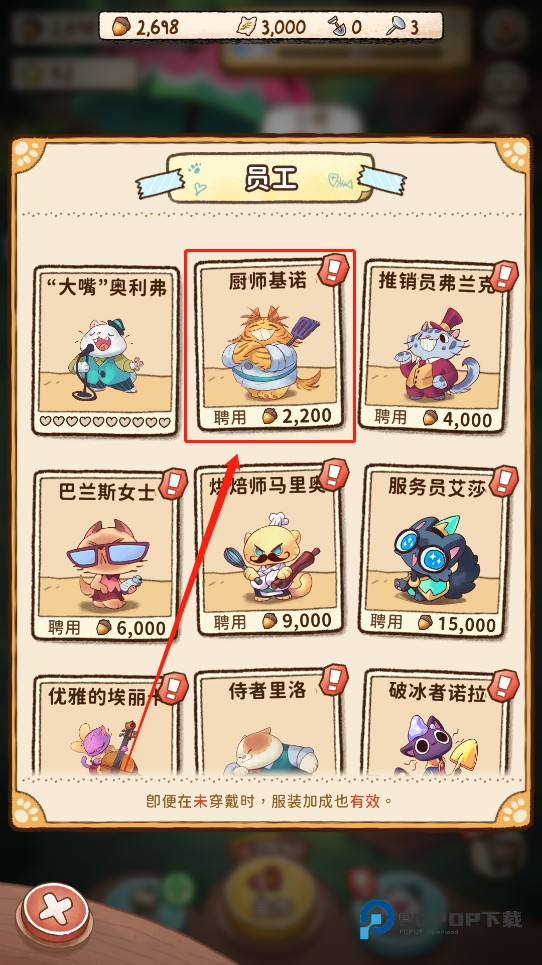 2、找到想要聘请的员工,如“厨师基诺”点击