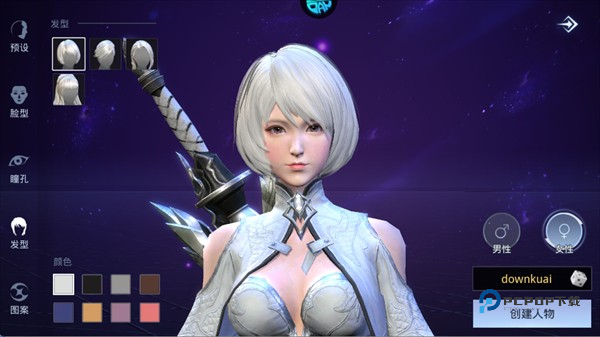 外观可自由定制发型、发色、脸型、瞳孔等细节,打造专属形象;角色名可自定义或随机生成,确认后点击「创建人物」即可进入游戏。