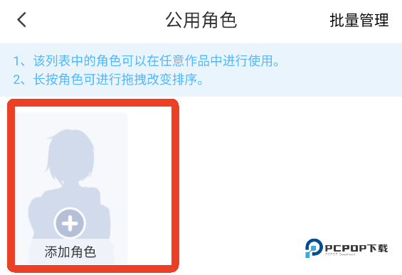 2、点击【添加角色】,选择角色性别。成功添加的角色可以在任何作品内使用。