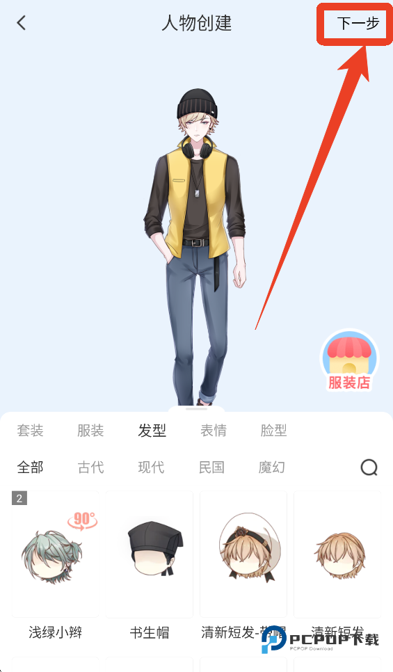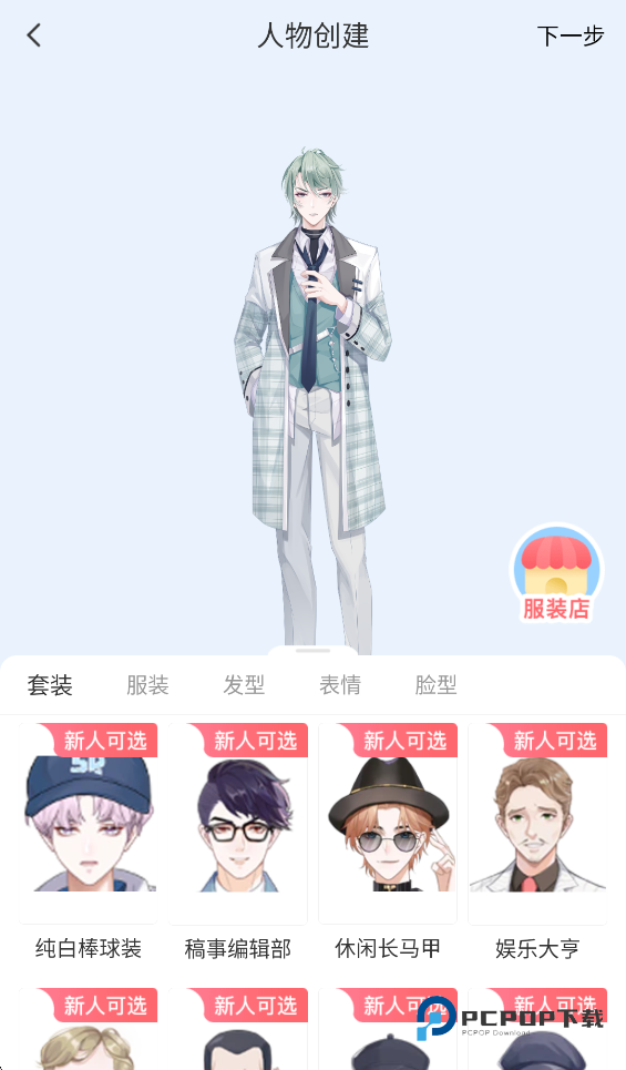 3、会给一个基础的人物造型,你可以更换人物的整体、局部、脸型和表情等。