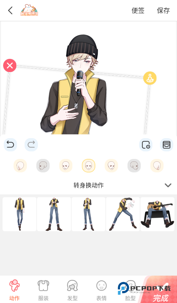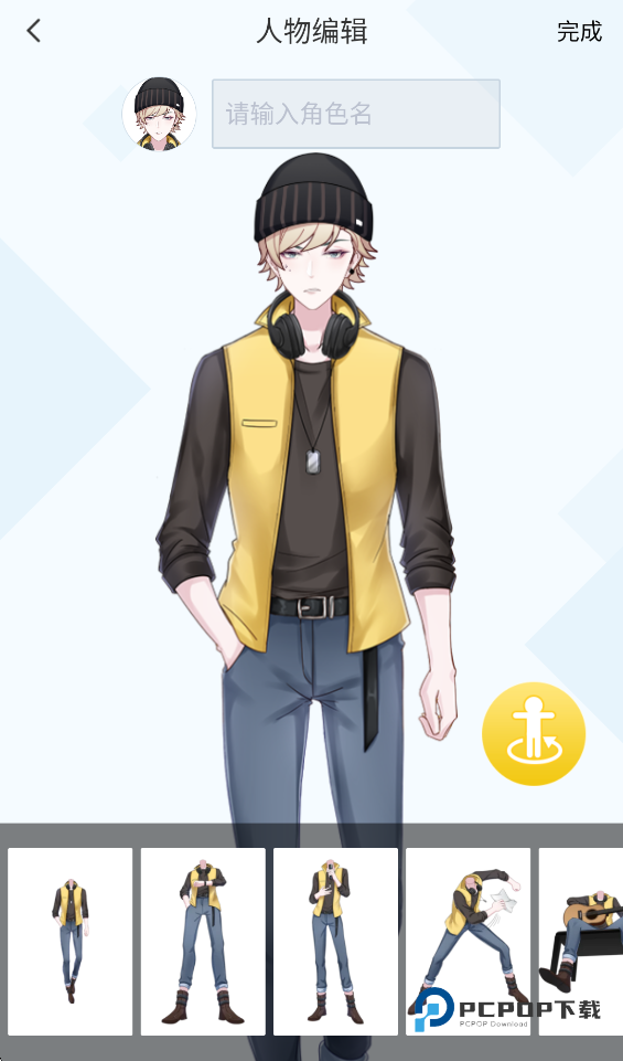 6、输入他的名字,也能选择一个帅气的姿势,然后点击右上角的【完成】。