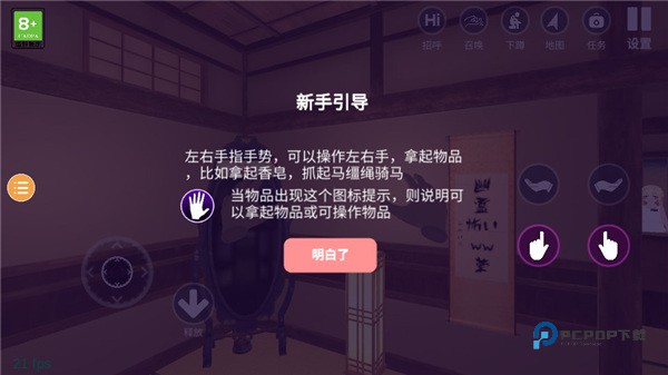 2、首先会开始一个新手引导,左右手指可以操纵左右手拿物品等。