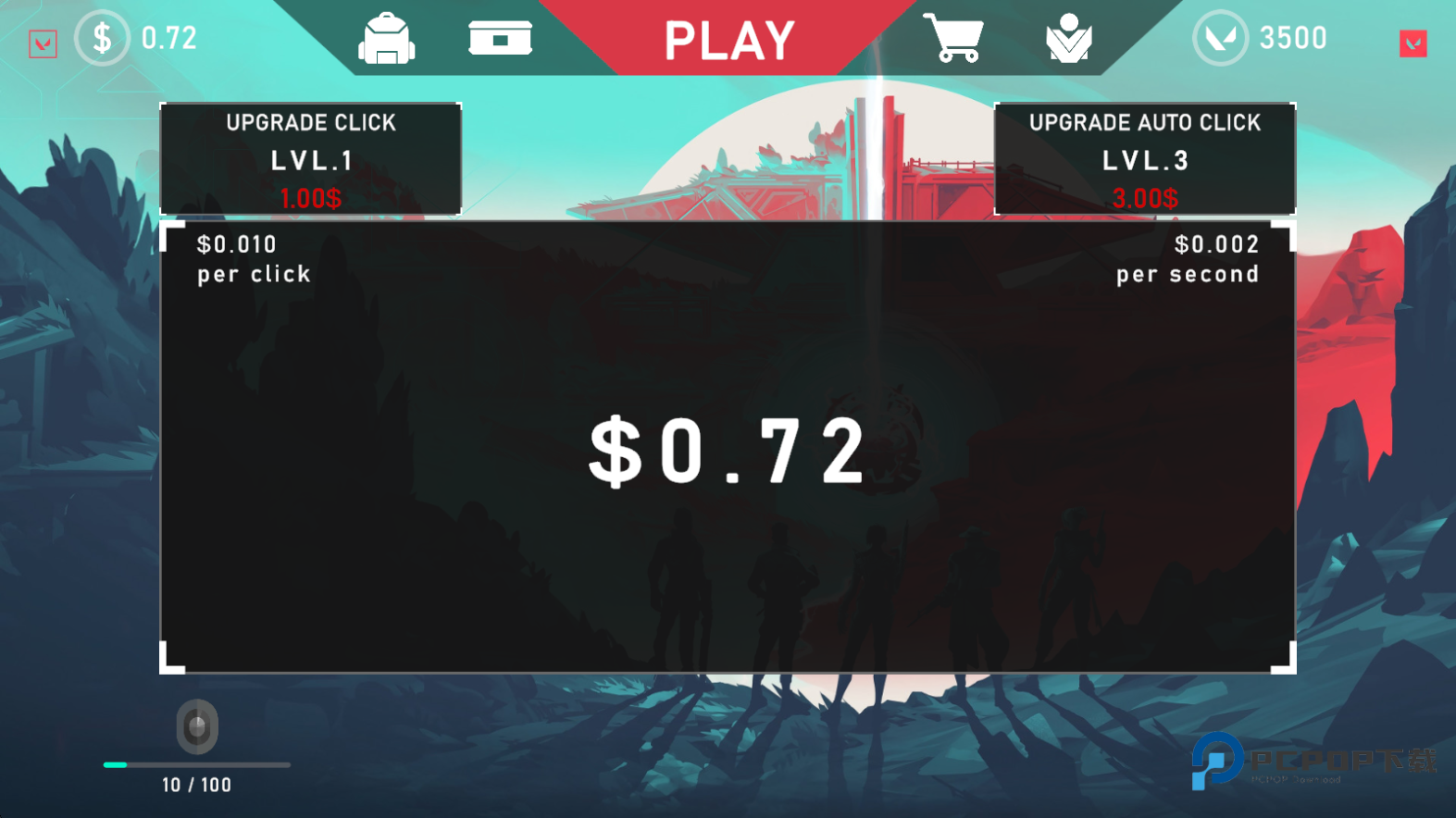 1、刚进入游戏时我们可以看到金币的界面,点击屏幕一下就能获得0.01的金钱。