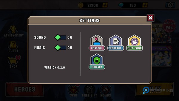3、首先点击右上角设置按钮,调整下音效、以及查看角色技能介绍;