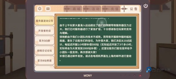 如图所示点击电视里的活动有签到,请及时领取,左上角的邮件图标里就有开服和炸服的补偿奖励。