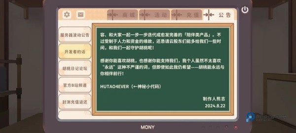 游戏内的时间与现实同步,所以要保证冰箱里有充足的食物哦,否则胡桃可要饿坏啦!到了晚上,胡桃会提醒你按时睡觉,要保持健康的作息呀!得到你精心照料的胡桃,会在吃完食物后,在冰箱内给你留下她的表情包,作为她的谢意,真是太可爱啦!