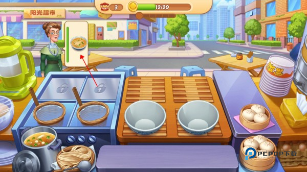 3、注意火候,当食材制作完成时,点击食材捞出,再点击食品即可给有需求的顾客