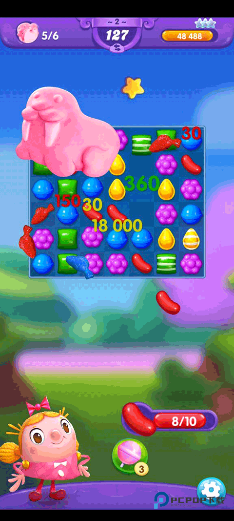 3、六连击,这个很棒,会对再次消除他的同色的糖果进行消除,利用这个可能一次性解决掉一个同色的糖果。