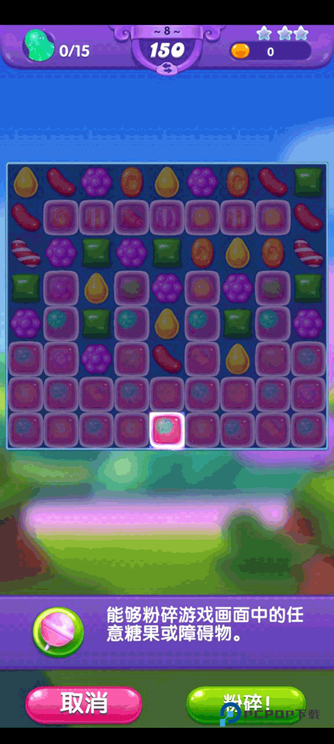 其次游戏内还有一个非常厉害的道具:棒棒糖锤,这个道具可以砸碎一个格子上的物品,每当不好进行下一步的时候它总会是小伙伴们的救星。