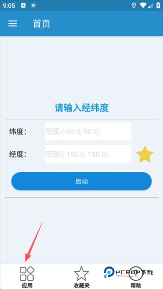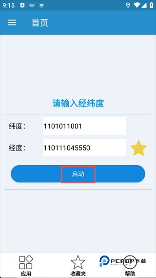 4、添加成功后,返回首页输入【维度、经度】点击启动