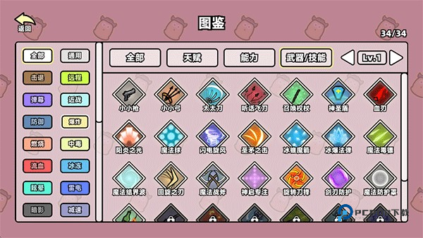 4、在图鉴页面中您可以查看浏览全部的天赋、能力、武器/技能等,助你快速了解游戏内容,接着返回后点击右上角下一步;