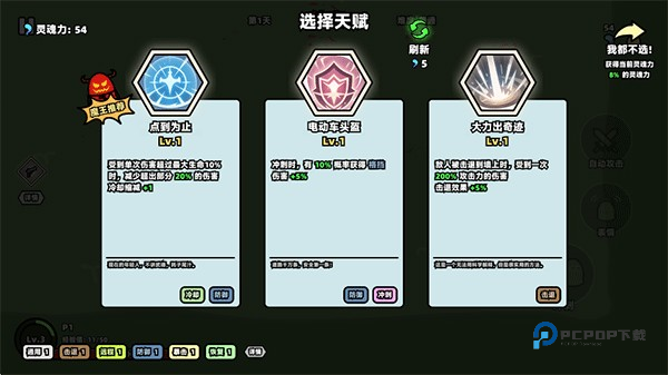 9、胜利后可选择天赋技能带入到下一个关卡;