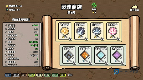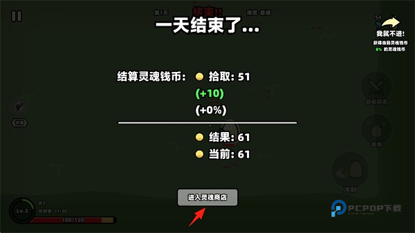 11、在灵魂商店使用灵魂钱币提升补充你的伤害、生命值、防御等属性。