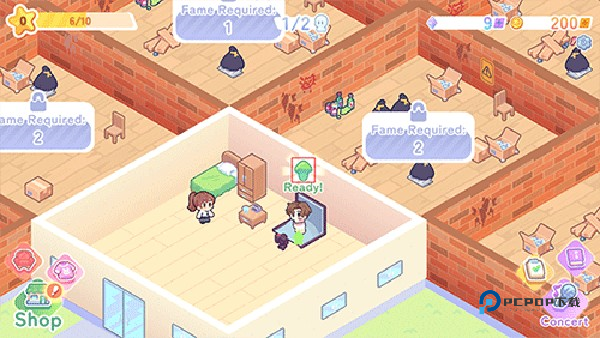 4、点击“Concert”-“play”开始他的舞台表演,需要点击屏幕收集粉丝的爱心和金币。