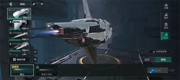点击【舰船皮肤】页面可自定义舰船皮肤,皮肤分为船身和尾焰,点击多舰船使用可批量应用皮肤。