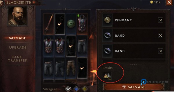 3、装备都不要扔,不用的白、蓝装去铁匠铺分解,得到的材料可以用来强化装备,需求量很大;