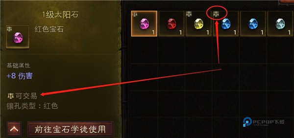 7、打到宝石可以在背包里查看是否可交易,可交易的可以拿去拍卖行卖,切记,可交易的如果使用了,就变成不可交易了;