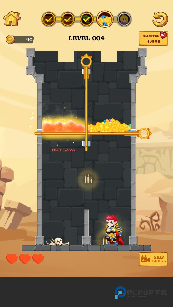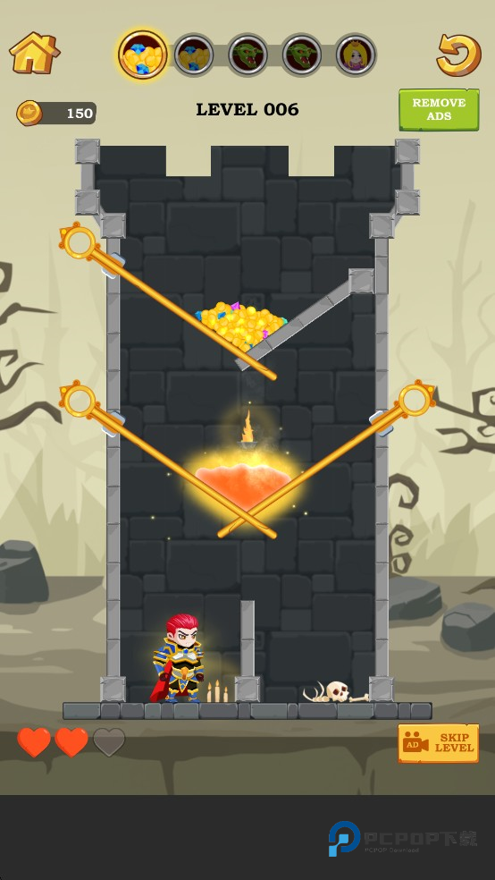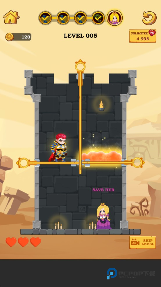 英雄救援是一款卡通风格的休闲益智手游,玩家将在游戏中扮演勇敢的骑士,帮助英雄拯救公主并获得宝藏,游戏内设有众多充满挑战的关卡,每个关卡的难度逐渐增加,玩家需要凭借智慧和策略,巧妙地解开机关,避开陷阱,安全通关。英雄救援下载的关卡场景丰富多样,从神秘的森林到古老的城堡,再到危险的火山和深邃的海底,每个场景都为玩家提供全新的视觉体验和挑战。