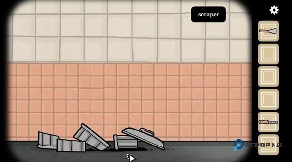 10、我们回到放箱子的地方,去看排水管,用锉刀将断裂的水管取下来,获得断裂的水管和钥匙。