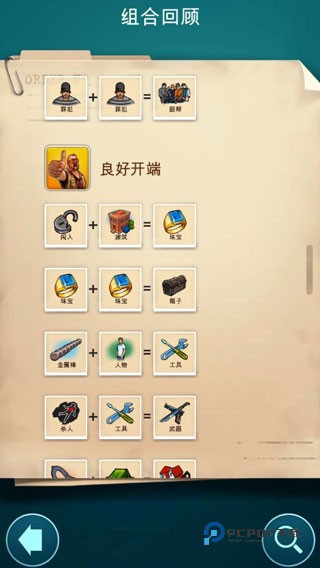 4、玩家需要通过组合物品、人物解锁新元素。