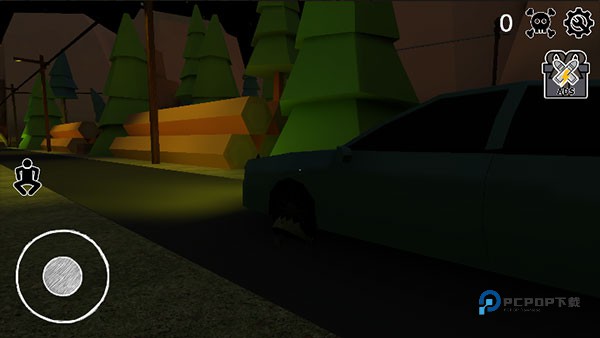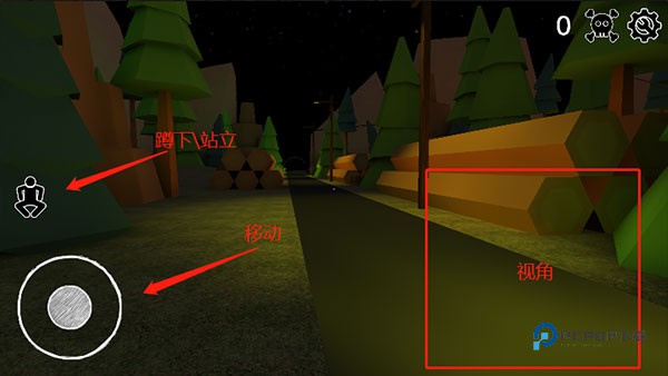 6、屏幕左侧控制人物移动,右侧控制视角方向,另外左侧还有蹲下站立按钮,右上角显示;