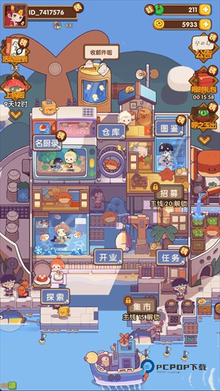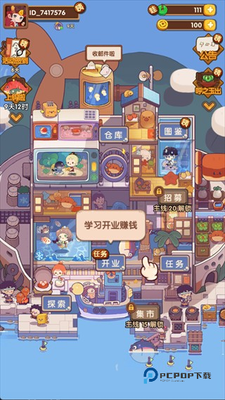 3、解锁【开业】功能后,可开启餐厅营业,通过售卖菜品赚取金币,同时后续还能解锁招募、集市等更多玩法。