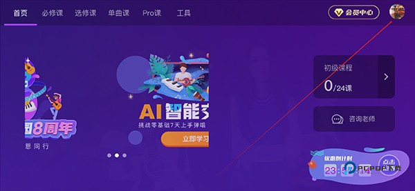 2、进来之后,全是关于吉他的一些教程,当你觉得这个乐器不适合自己时,点击头像
