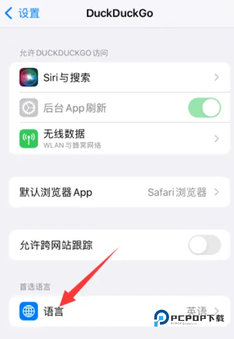 3、系统会自动进入手机设置的duckduckgo设置界面中,点击“语言”选项。