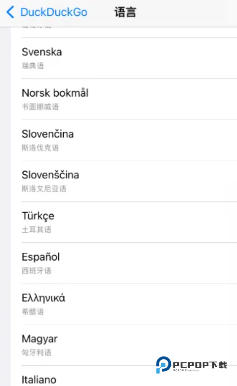 duckduckgo目前无法设置为中文,在语言设置中,可以看到选项里面没有中文,只能在系统提供的语言中选择设置其他语言。