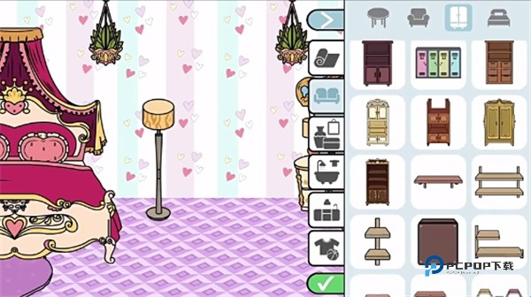 1、玩家可以自由的选择各种家具、家居用品和装饰品来打扮房间,按照自己的想法设计出完美的卧室。