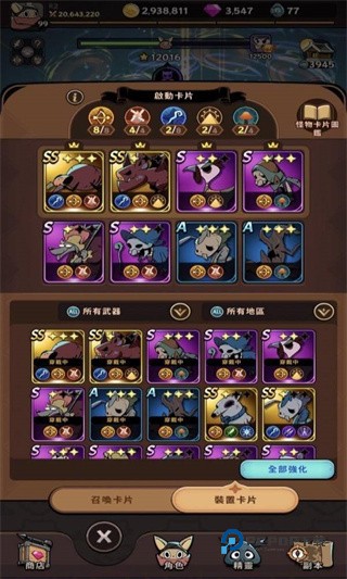 很幸运在中期,还在拿法杖时就抽到三星SS红色不死族蜘蛛,也是当初让我选择弓非短剑的主要原因之一。基本配置同武器8卡开2阶四个技能我是无脑塞加攻击力属性的卡片优先属性 :村庄外围x4 — SS阶级装备穿戴数x攻击力+35%(副武器也会加乘,所以最多加到7件)沙漠遗迹x2 — 15%血线下普通怪物即死蘑菇之森x2 — 30%血线下造成敌人1.2被最终伤害。