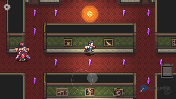 6、一直向右走到尽头乘坐电梯上二楼,收集所有散落的紫水晶,但是要注意会有猴子怪物追赶你,不止一只哦,你需要灵活的走位,抓住时机寻找藏身之处,躲避它们的追杀,