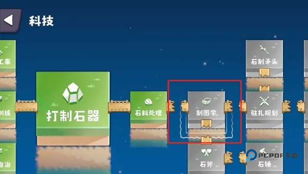 进入石器时代后,通过解锁制图学,从而解锁作战指挥所,进而解锁外出战斗系统。(作战指挥所在初始岛的正左方岛屿)
