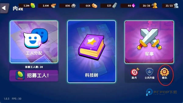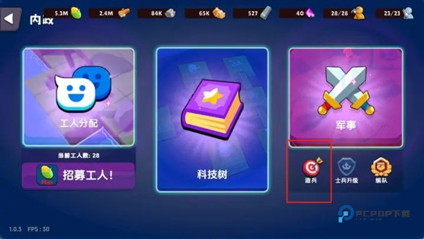 (2)点击科技面板,右下角有造兵按钮,也可以进入造兵界面哦。