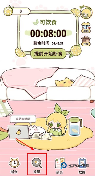 1、打开柠檬轻断食app,点击下方的“食谱”图标;