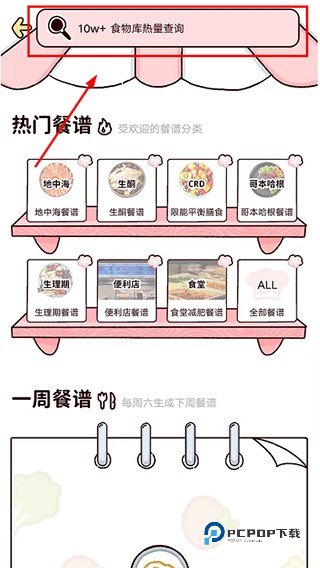 2、在“食谱”页面的顶部输入你想要查询的食物名称,比如“鸡蛋”;
