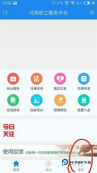 2、安装完成点开豫工惠,而后点“我的”;