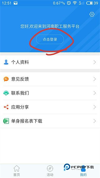 5、注册完成后返回豫工惠主页面,点登录键即可。